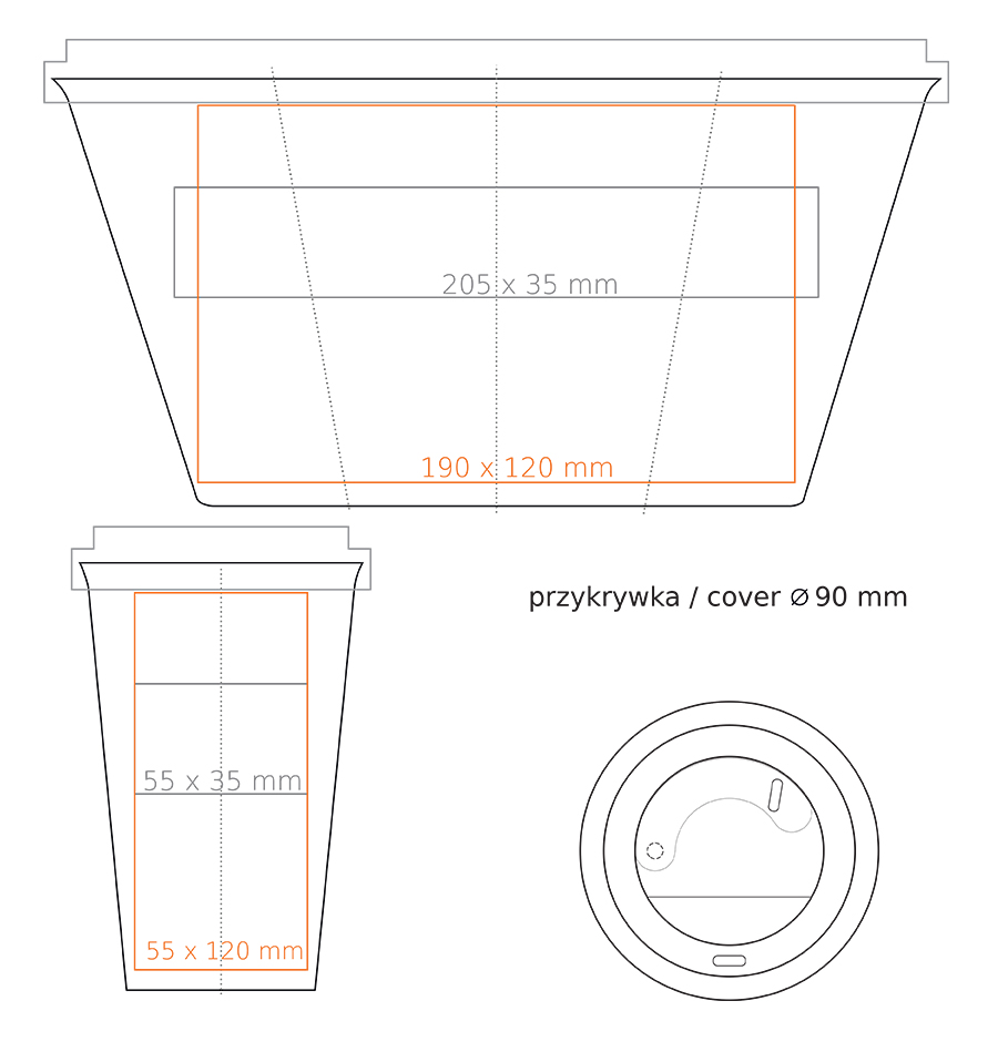 Porzellan-Werbetasse mit Polymerdeckel, der vor versehentlichem Verschütten von Getränken schützt – Version mit Lock-Verschluss. Modell für aktive Menschen sowie Liebhaber von Ausflügen und Reisen. Dank der seltenen inneren Struktur mit doppelten Porzellanwänden zeichnet sich diese Tasse durch eine erhöhte thermische Isolierung aus. Der Tassenkörper ist in Weiß und Satin-Schwarz erhältlich. Der Deckel ist in folgenden Farben verfügbar: Weiß, Orange 021C, Cool Gray 7, Marineblau 294C, Braun 4695C, Schwarz, Rosa 4064C, Blau 2144C, Eukalyptus 5493C, Desert Sand 2310C.