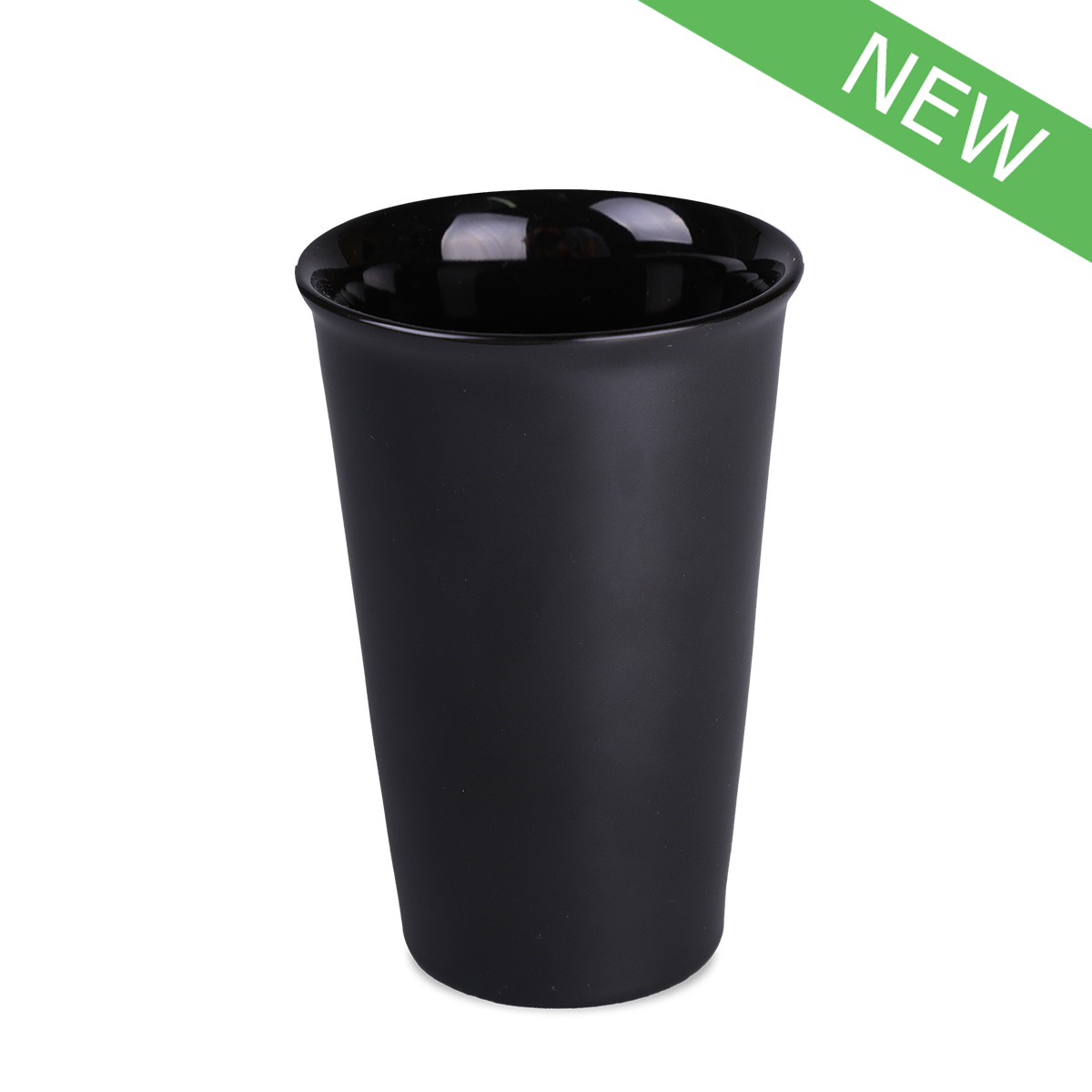 Werbebecher aus Porzellan ohne Ohr. Dank der seltenen doppelwandigen Porzellan-Innenstruktur verfügt dieser Becher über eine erhöhte Wärmedämmung.