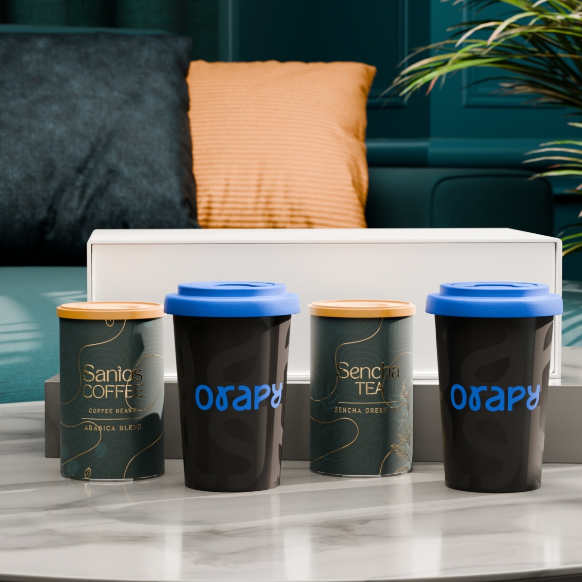 Das Set mit den mobilen Freedom-Bechern verbindet Mobilität mit subtilem Branding. Im Inneren befinden sich außerdem ausgewählter „Santos Coffee“ und „Sencha Tea“ in eleganten Dosen. Das Ganze ist in einer exklusiven, schneeweißen Verpackung mit Magnetverschluss verpackt. Der Deckel ist in folgenden Farben erhältlich: Weiß, Orange 021C, Cool Gray 7, Rot 200C, Marineblau 294C, Braun 4695C, Schwarz, Rosa 4064C, Blau 2144C, Eukalyptus 5493C, Desert Sand 2310C.